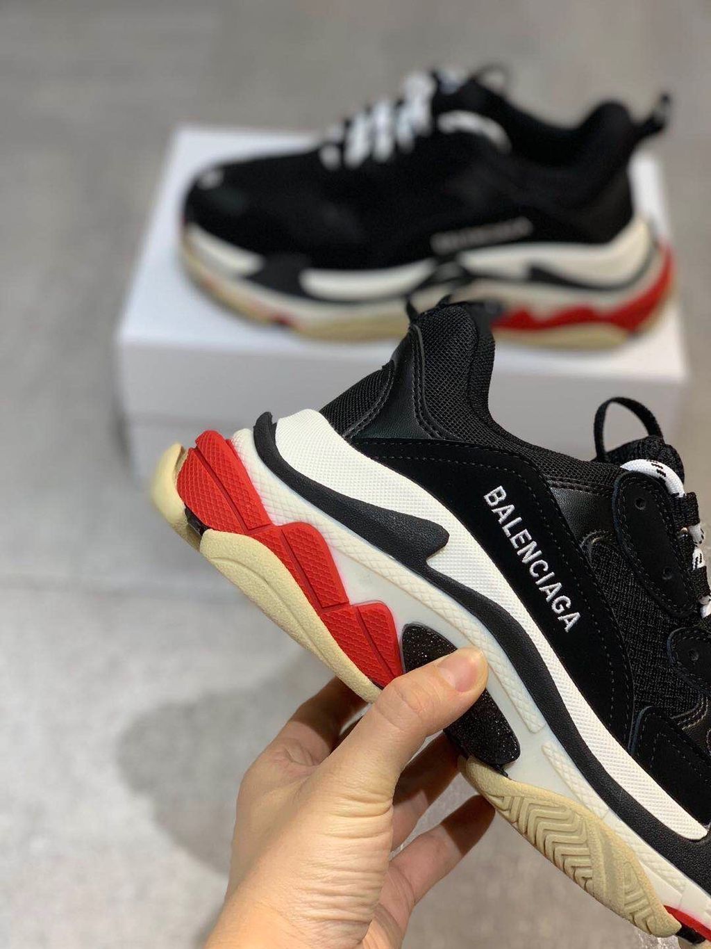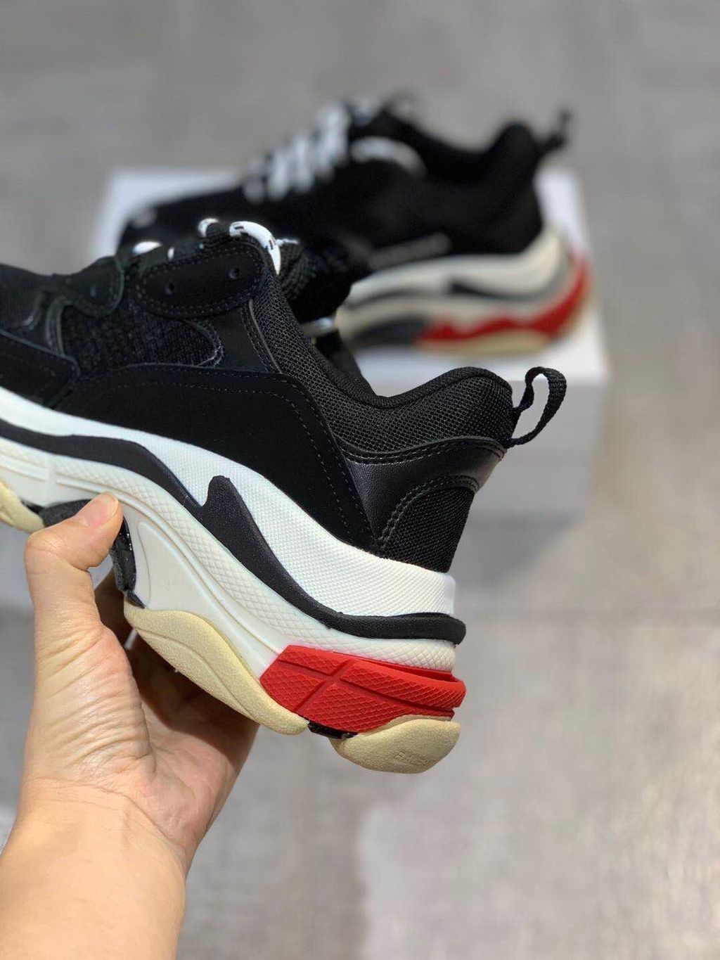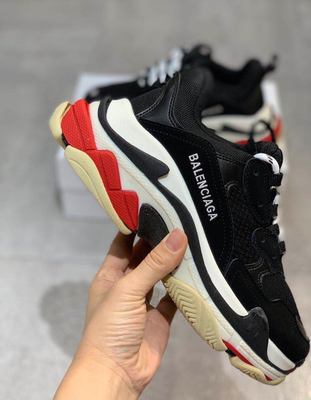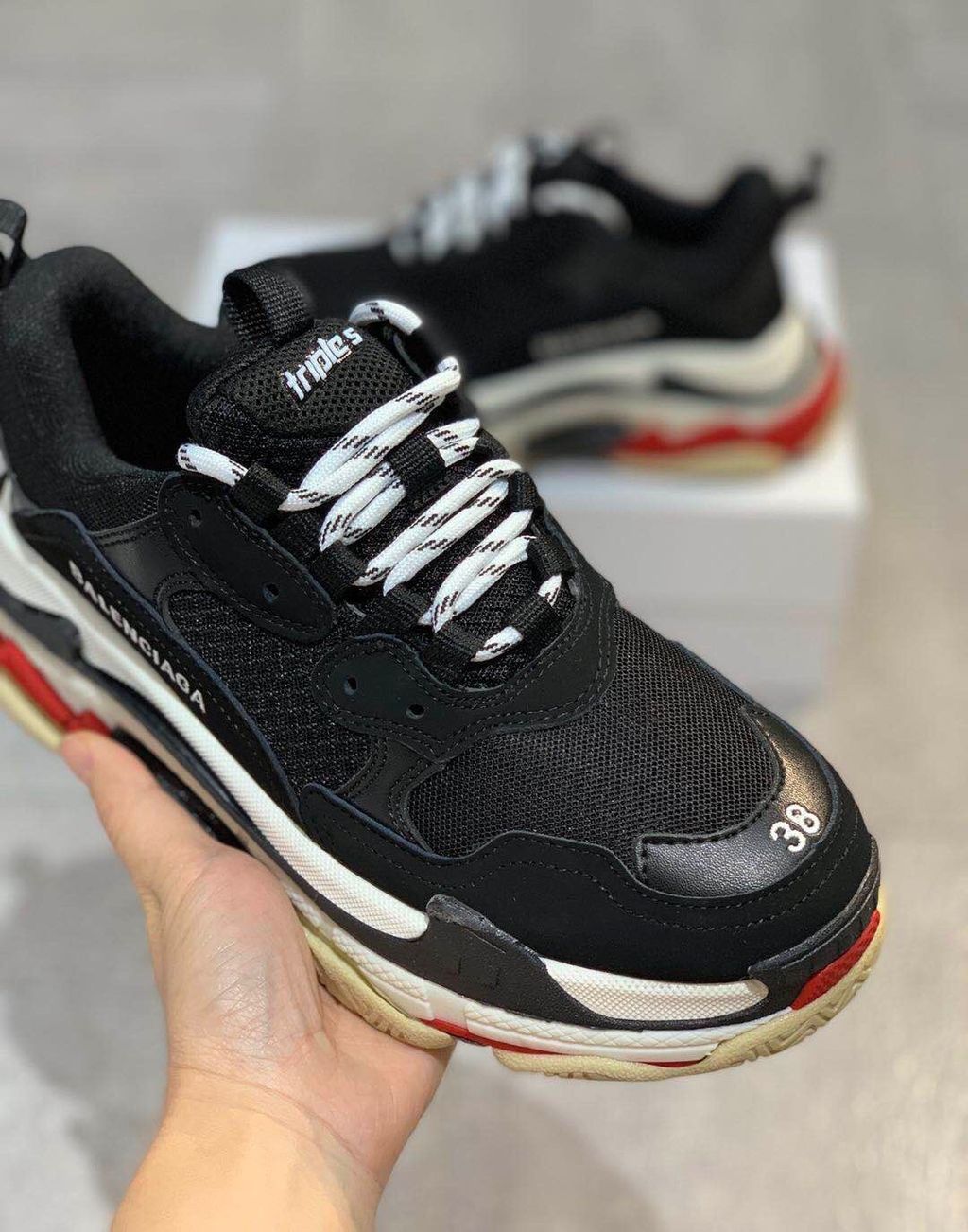 The Triple S by Balenciaga was first seen in January of 2017, but it dropped only in September of the same year. Once it launched, the shoes shook the sneaker scene and started the "Dad" sneaker trend. Today, they are on the feet of sneaker fans and celebrities all over the world. These are crafted from leather and mesh into a chunky size, achieved by the high complex soles. They feature the shoe size on the tip of the toes, the label on the sides and bicolor laces on the vamps.