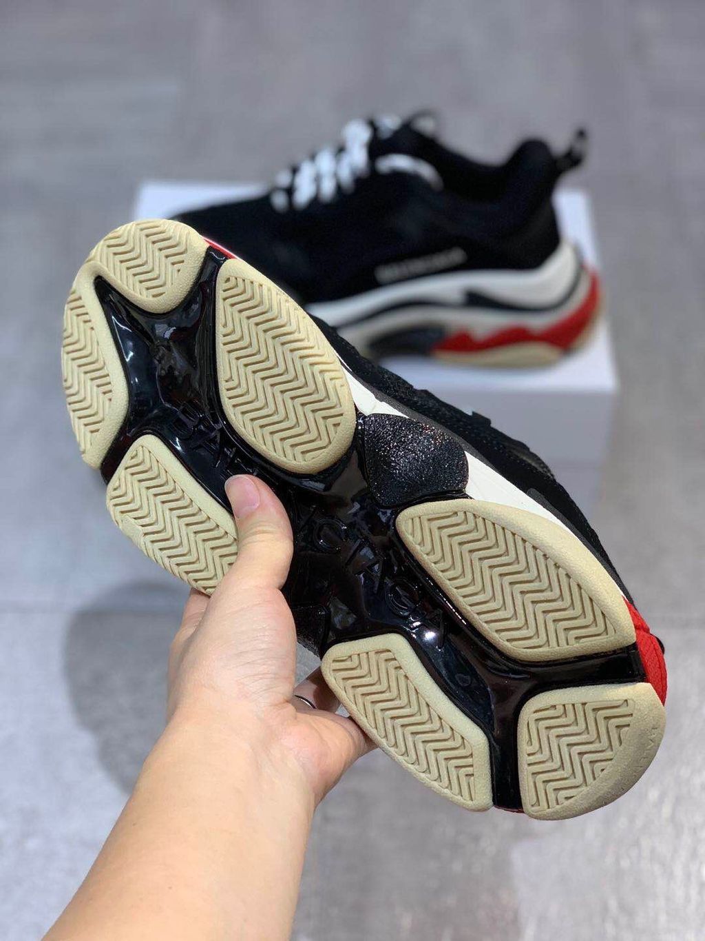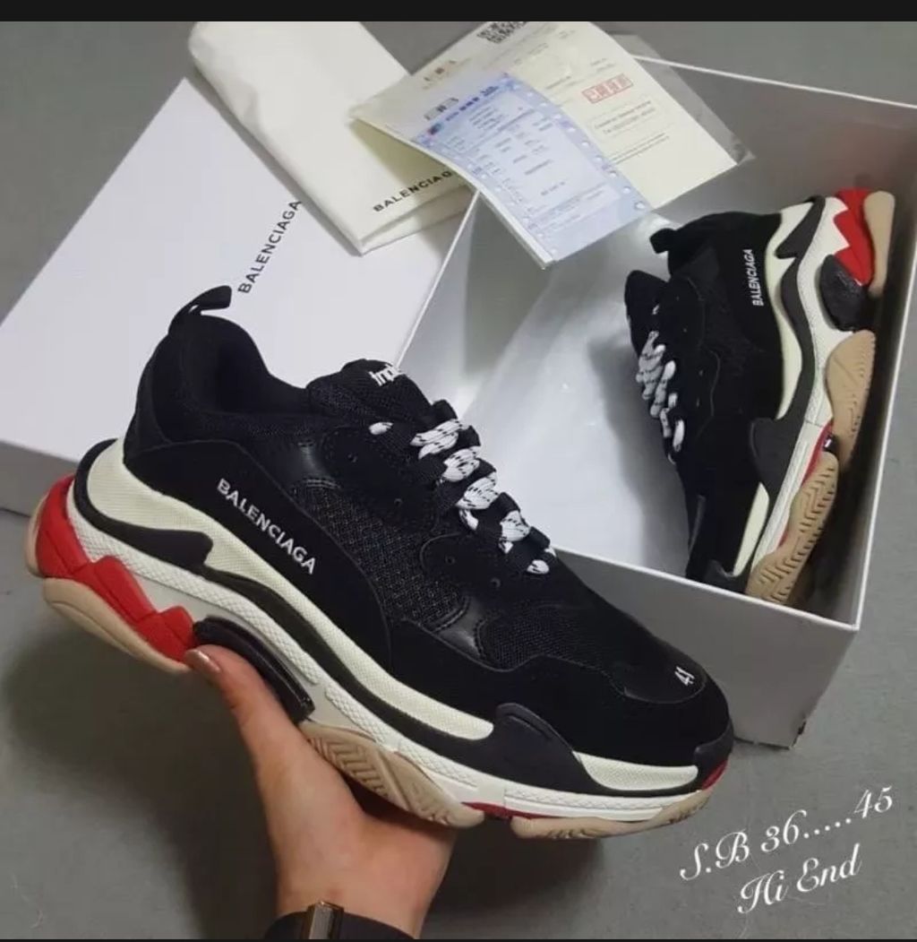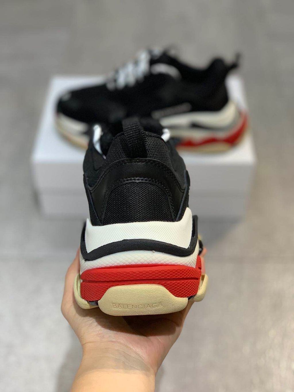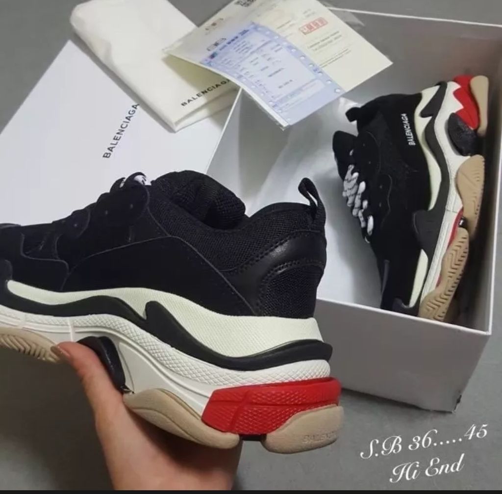 The Triple S by Balenciaga was first seen in January of 2017, but it dropped only in September of the same year. Once it launched, the shoes shook the sneaker scene and started the "Dad" sneaker trend. Today, they are on the feet of sneaker fans and celebrities all over the world. These are crafted from leather and mesh into a chunky size, achieved by the high complex soles. They feature the shoe size on the tip of the toes, the label on the sides and bicolor laces on the vamps.