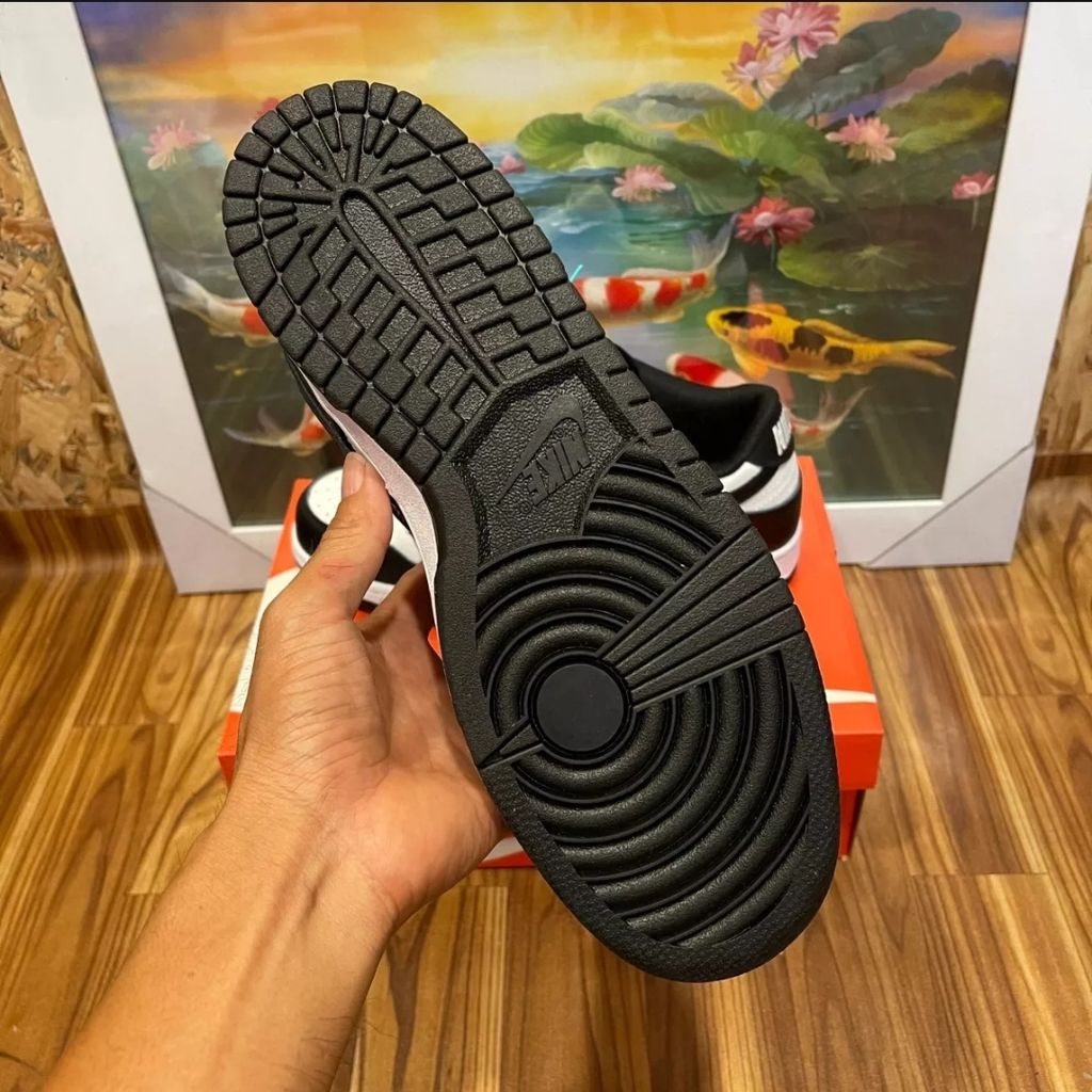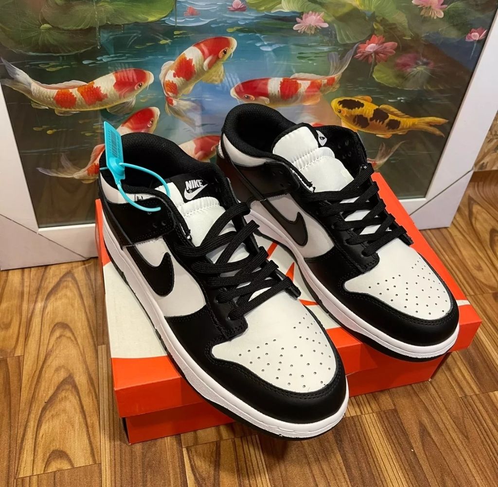The upper Nike Dunk Low Retro White Black is constructed of white leather with black leather overlays and Swooshes. Classic Nike branding is featured on the nylon tongue, nodding to traditional Dunk design elements. A white midsole and black outsole completes the design.