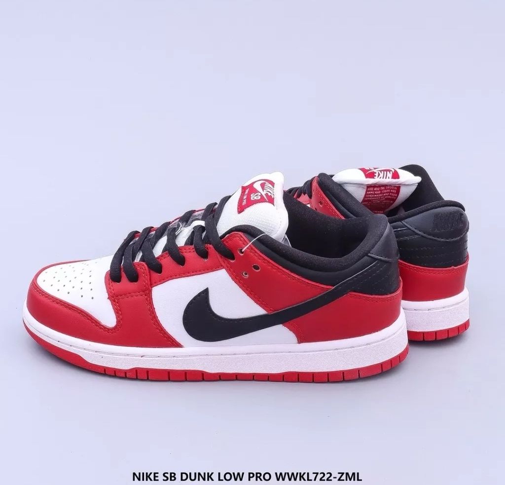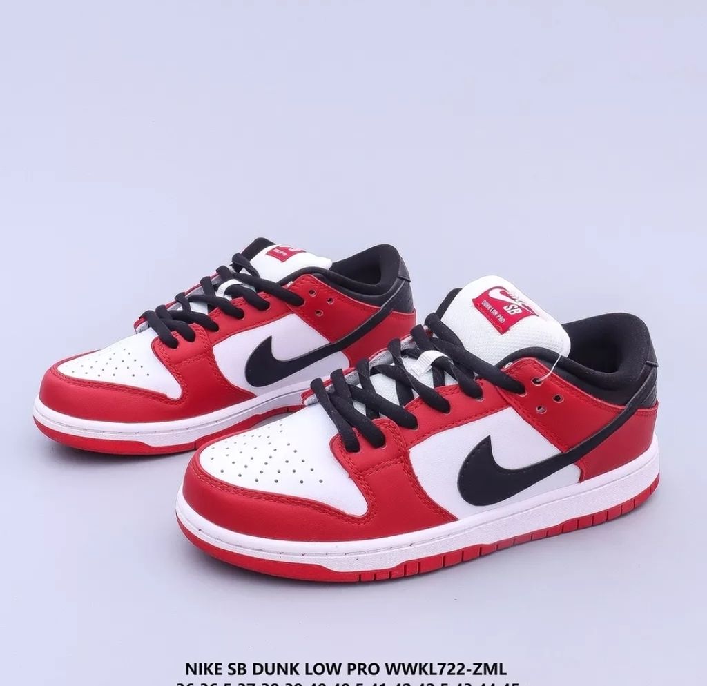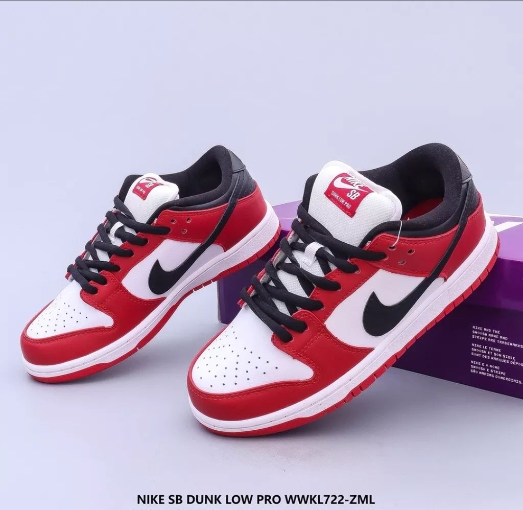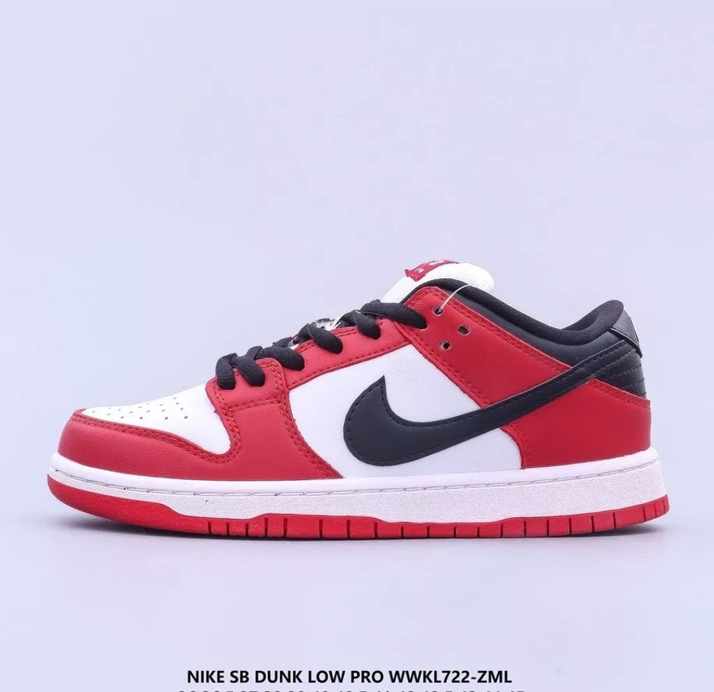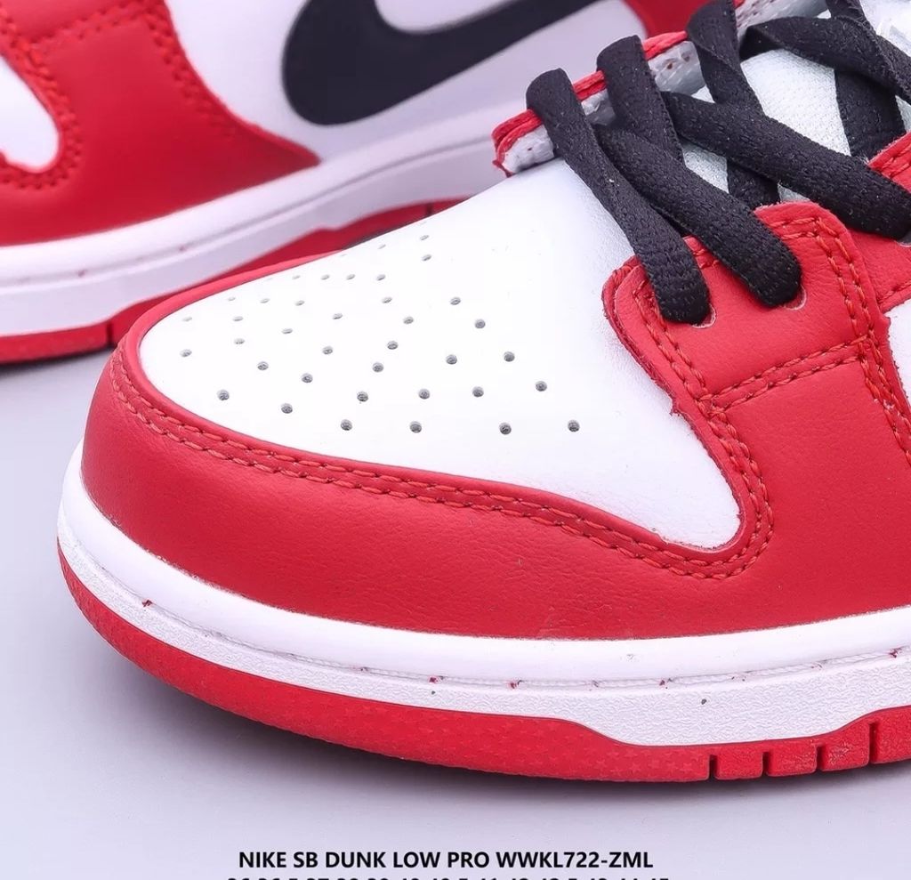 This colorway of the Nike SB Dunk Low utilizes the classic Chicago color scheme from the Air Jordan 1 and is constructed out of a leather upper. The sneaker is done in the same color blocking as the Air Jordan 1 Chicago as we see a White leather upper that is offset by the Red leather overlays and Black leather accents on areas such as the Swoosh, lining, heel tab and laces. A white midsole and red rubber outsole finish things off on this Nike SB Dunk Low Pro