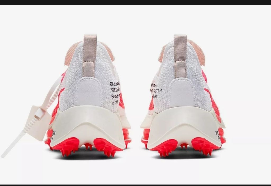 The Off White Tempo Zoom Next % “Solar Red” joins the “Scream Green” and “Pink Glow” colorways of the upcoming collaborative silhouette by Virgil Abloh, which will be dropping soon. Featuring a deconstructed aesthetic, its flyknit uppers are detailed with the signature Off-White™ branding and oversized Swooshes in a painted manner, alongside “AIR” printed on the heels. Finally, white midsoles and Solar Red for the spiked Zoom rubber outsole top off the style.